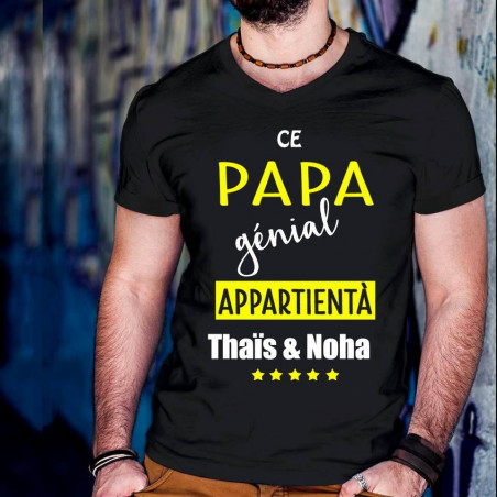 Personnalisez ce t-shirt avec les prénoms de vos enfants pour une création unique en son genre. Offrez à papa la chance de porter fièrement le titre de 'papa génial' que lui attribuent ses enfants.
