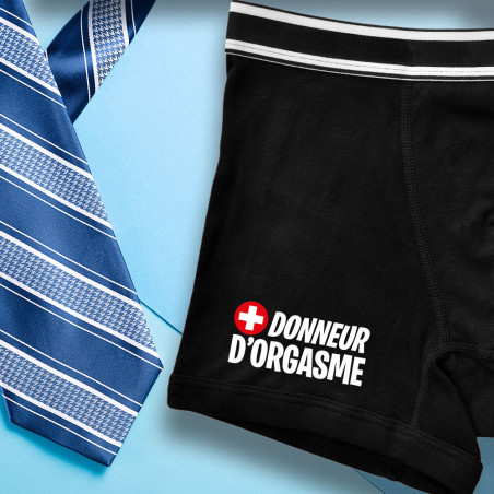 Apportez une touche d'humour et de piquant à votre relation avec notre Boxer personnalisé humour homme DONNEUR D'ORGASMES. Un cadeau personnalisé et original qui ne manquera pas de faire sourire votre partenaire.
