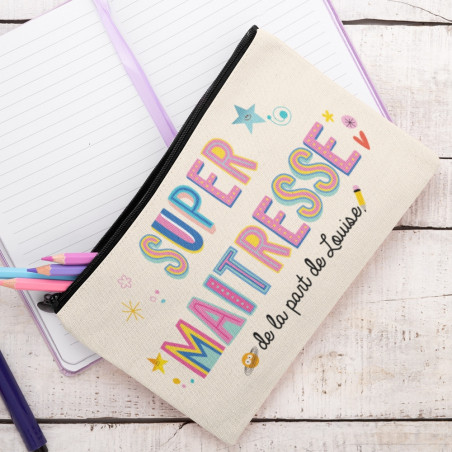 N'attendez plus, commandez votre trousse pochette personnalisée Super Maîtresse avec prénom de l'enfant dès aujourd'hui et faites le bonheur de l'enseignante dévouée de votre enfant !
