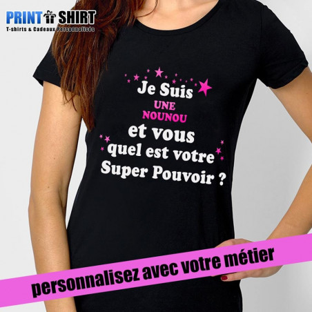 Découvrez notre T-Shirt personnalisé 'Super Nounou', une manière originale et stylée de montrer au monde votre super-pouvoir ! Que vous soyez nounou, maîtresse, ou atsem, ce T-Shirt est fait pour vous.