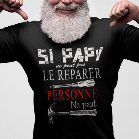 Le vêtement message pour papy porte un message clair : "Si Papy ne peut le réparer, personne ne peut". Il capture parfaitement l'essence d'un grand-père qui, avec son expérience, sa sagesse et ses outils, est le véritable héros de la famille.