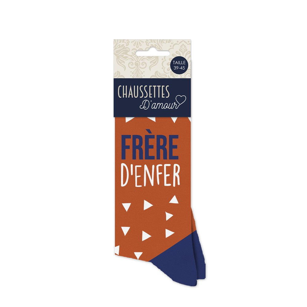 Quoi de mieux pour célébrer le lien fraternel unique que des Chaussettes Personnalisées 'Frère d'Enfer' ? Conçues spécifiquement pour les héros du quotidien que sont nos frères, ces chaussettes allient style, confort et personnalisation.