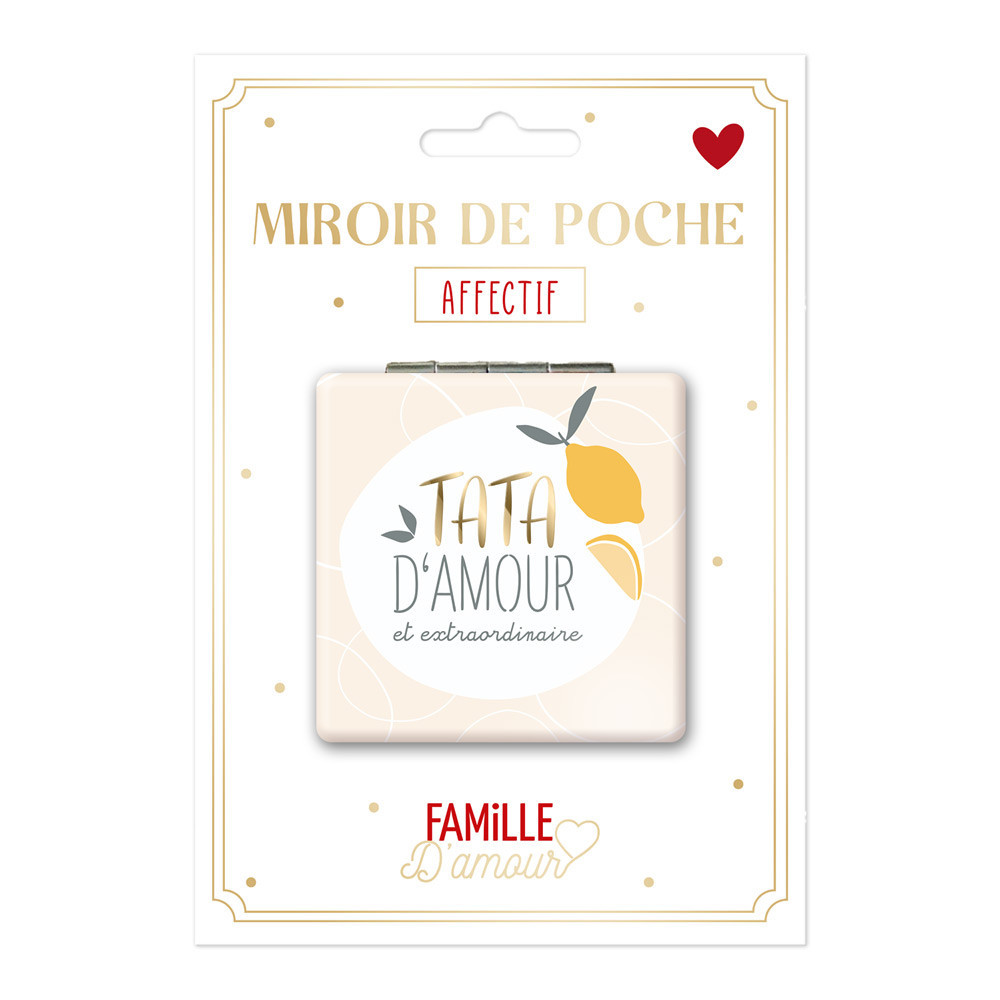 Offrez un cadeau qui reflète l'amour et l'affection que vous portez à votre tata avec notre miroir de poche personnalisé. Imprimé de l'inscription 'Tata d'Amour', ce miroir n'est pas seulement un accessoire pratique, mais aussi un symbole d'admiration et de gratitude.