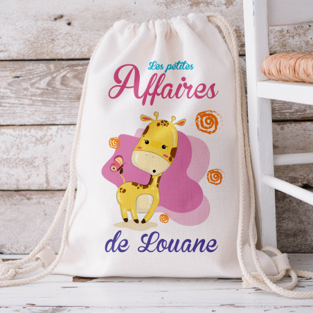 La girafe amusante et ses couleurs douces apportent une touche de gaieté au quotidien. Grâce à la personnalisation, ce sac prénom enfant ne risque pas de se perdre et permet à votre enfant de reconnaître facilement ses affaires. C’est à la fois un accessoire tendance et une solution pratique pour les parents.