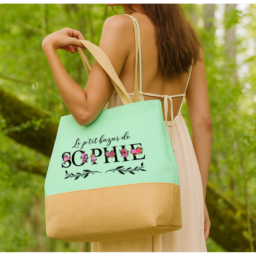 • Sac cabas personnalisé “Le p’tit bazar de prénom” – Cadeau femme original