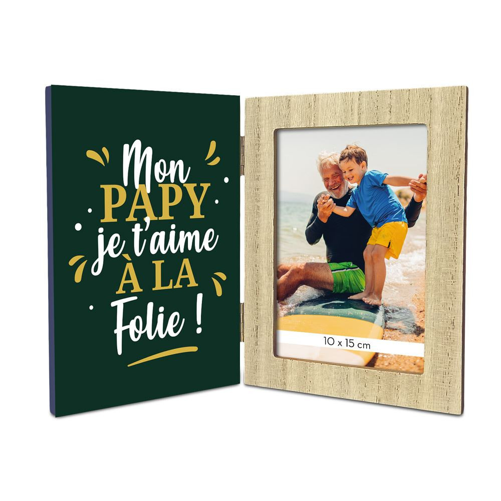 Surprenez votre grand-père avec ce magnifique cadre photo personnalisé en bois, imprimé avec le tendre message "Mon papy que j'aime à la folie !". Ce cadeau unique est conçu pour capturer les souvenirs les plus précieux et émouvoir ceux que vous aimez. Que ce soit pour un anniversaire, la fête des grands-pères ou simplement pour lui dire combien il compte pour vous, ce cadre est la façon idéale de partager un moment d’amour et d’affection.