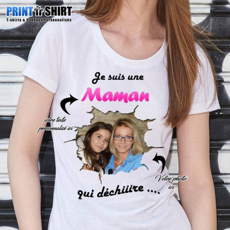 T-shirt personnalisé avec photo Je suis une maman qui déchire""