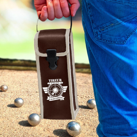 Vous cherchez une idée-cadeau originale pour un amateur de pétanque ? Cet étui pour boules de pétanque personnalisé est fait pour vous ! Avec l’inscription "Tireur d'élite, l'as du carreau", il combine style et praticité, parfait pour les joueurs qui souhaitent se démarquer.