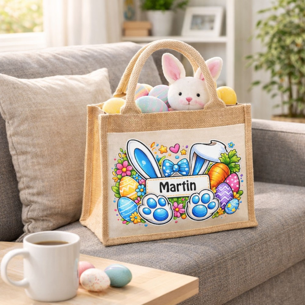 ✅ Souvenir durable de la fête de Pâques ⚙️ Caractéristiques produit Type : Sac cabas enfant / panier de Pâques Matière : Toile coton et base en jute Couleur : Naturel et beige Anses : Coton naturel solides Personnalisation : Prénom de l’enfant Utilisation : Chasse aux œufs, sortie, école, loisirs Entretien : Nettoyage doux recommandé