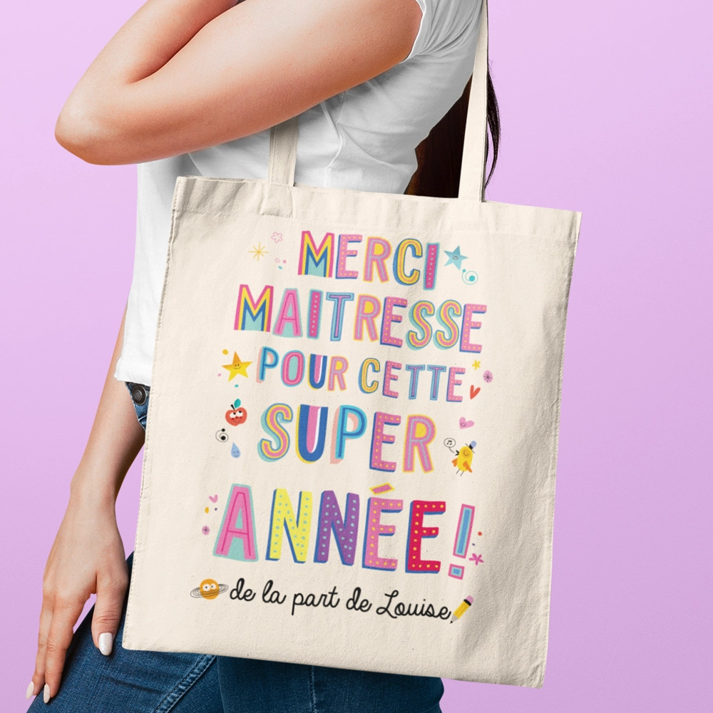 Vous cherchez le cadeau idéal pour remercier votre maîtresse pour cette année scolaire exceptionnelle ? Ne cherchez plus ! Notre tote bag personnalisé est la solution parfaite.